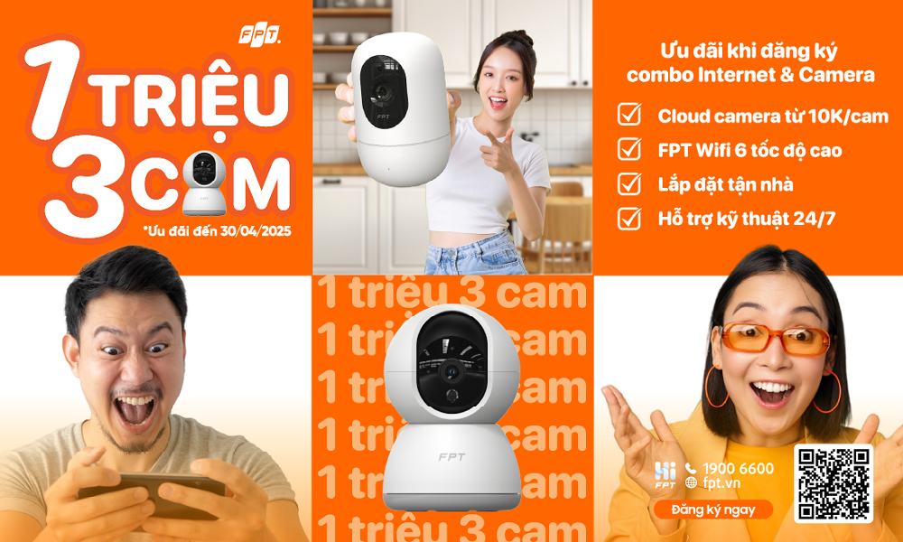 Giảm tiền cước Internet, miễn chi phí lắp đặt khi đăng ký trọn gói Internet và Camera FPT