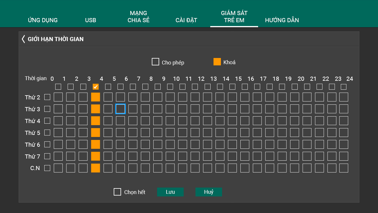 Việc kiểm soát thời lượng xem TV của con em là vấn đề được nhiều phụ huynh quan tâm. Xem TV quá nhiều có thể ảnh hưởng xấu đến sự phát triển trí tuệ và các vấn đề khác của con trẻ. Tính năng truyền hình FPT có thể cho bạn giám sát trẻ em thông qua phím “Khóa”, vừa kiểm soát được nội dung và thời lượng xem TV của trẻ.